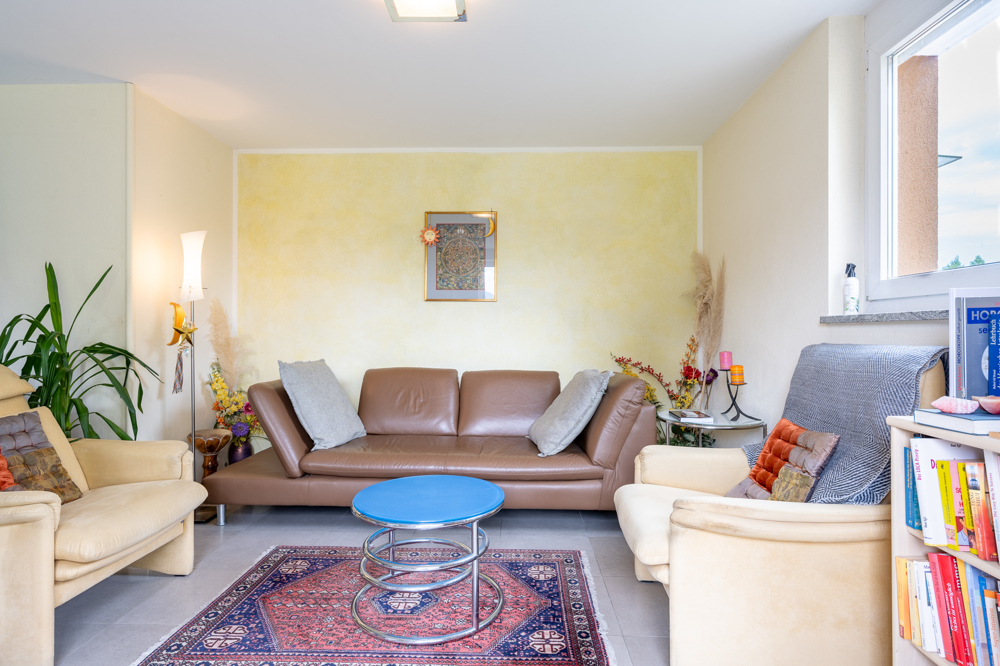 Öko-Haus: Lehmverputz in allen Räumen im Erdgeschoss (=Parterre) und im Obergeschoss.
