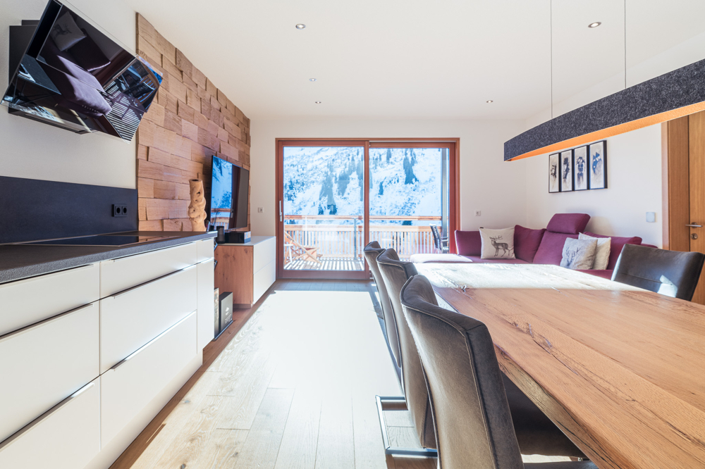 Sämtliche Wohnungen dort verfügen über einen beeindruckenden Blick über das Dorf in Richtung Süden/Glatthorn, sowie Osten/Zafernhorn/Faschina.