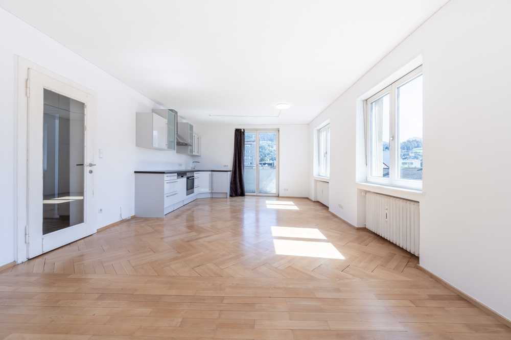 Von der Wohnung hat man einen wunderschönen Ausblick auf die umliegende Bergwelt und die Innenstadt.